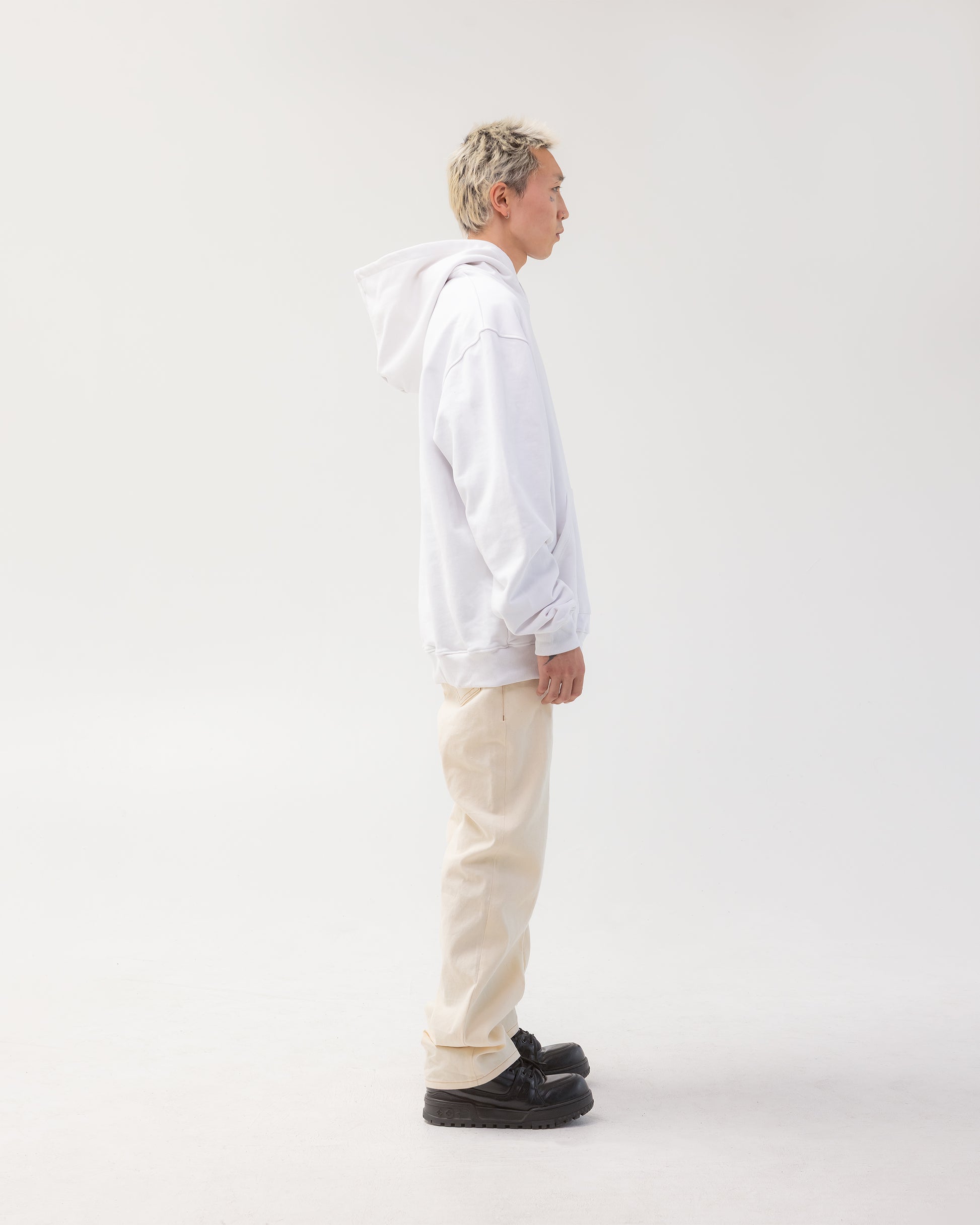 EMANUEL HOODIE IN WHITE OR PFD (PREPARED TO DYE) CRAFTED WITH THEΒ MOST LUXURIOUS FRENCH TERRY LOOP/DIAGONAL FABRIC FAVORED BY EMANUEL RICCI IN HIS COLLECTIONS AND WELL AS BY OTHER MAJOR LUXURY BRANDS.